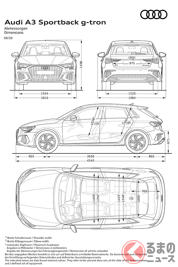 ドイツでは、2026年まで天然ガスとバイオメタンに対する優遇税率が適用されていることもあり、A3スポーツバック 30 g-トロンは経済面でもリーダー的存在だという。100km走行あたりの二酸化炭素(CO2)排出量は、99gから96g。CNGは水素を多く含む燃料であるため、ガソリン車と比較するとCO2の排出量は約20%少なくなる。