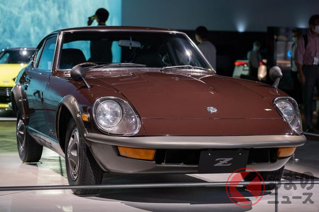 パビリオンに入るとまず、1969年にデビューした初代フェアレディZが出迎えてくれます。横には発表されて間もない新型「アリア」が並び、そして奥に新型フェアレディZプロトタイプがスポットライトを浴びて展示されていました。