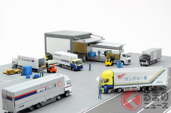 ラインナップは、「日本通運 いすゞギガ ウィングバン+フィギュア」「西濃運輸 日野プロフィア ウィングバン+フィギュア」「日本通運 いすゞフォワード 冷蔵バン+荷物」「名鉄運輸 いすゞフォワード 冷蔵バン+カゴ車」「三菱 ふそうスーパーグレート ウィングバン+フィギュア」「日野レンジャー 冷蔵バン+パレット」「フォークリフト+建物パーツA+操縦する人+小物各種」「フォークリフト+建物パーツB+操縦する人+小物各種」に加え、シークレット1種を含む9種類のうち、どれかひとつが入ったブラインド形態で発売されます。