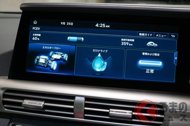 次世代のエネルギーとされる水素を燃料として走行し、排出するものは水だけ。環境を汚染する物質の排出がゼロであるのはもちろん、3段階の空気浄化システムによって空気中の微小粒子状物質(PM2.5)までを取り除く機能を持つため、「走る空気清浄機」との別名もあります。