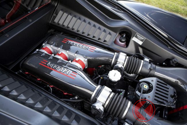 リアミッドに縦置き搭載されるエンジンは、フェラーリのV型8気筒エンジンとしては伝統的な、90度のバンク角を持つもの。総排気量は4499ccという数字となり、したがって4.5リッターの8気筒エンジンということから458とネーミングされている。