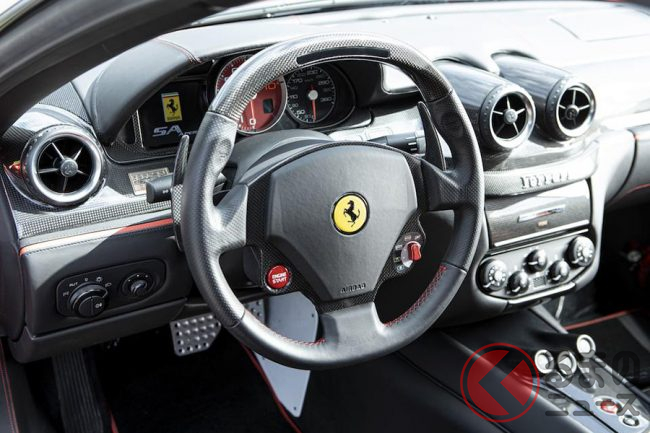 そして、専用プログラムの「F1スーパーファスト」6速2ペダルMTとの組み合わせで、当時の市販フェラーリでは最速となる最高速335km/h、0−100km/h加速3.35秒というポテンシャルを達成。フィオラーノのテストコースを1分24秒で走り切る実力を持つ。つまり、あのエンツォ・フェラーリよりも、マキシマム以外ではことごとく速いデータを叩きだしたのである。