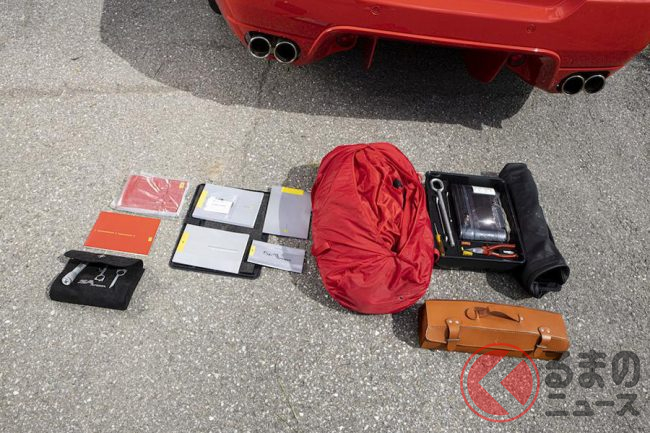 デリバリー以来の走行距離は、まだ1577kmという超ローマイレージ。フェラーリの限定モデルには自動的に添付される「フェラーリ・クラシケ」のレッドブックをはじめ、すべてのドキュメントが添えられるという。