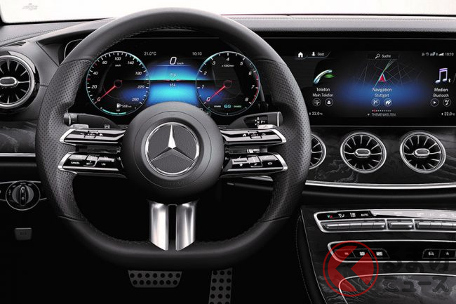 インフォテイメントシステムは、12.3インチの大型ワイドスクリーン2画面を標準装備。また対話型インフォテイメントシステム「MBUX」を採用、「ハイ! メルセデス」をキーワードとして起動する。