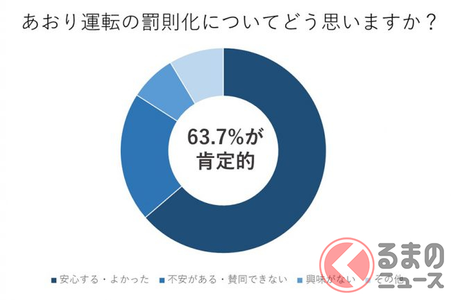 「あおり運転に対する罰則の創設をどのように思うか」との質問では、63.7%の人が「安心する・よかったと思う」と回答。半数以上の人が、あおり運転の抑止、あるいは解消する可能性のある罰則の創設に、期待を寄せているようです。