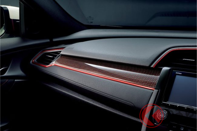 さらに、外観上では赤色のアクセントが際立つ「フロントグリルガーニッシュ」や「ドアミラーカバー」、白く輝く20インチアルミホイール、従来からラインナップしているリアルカーボン製の「テールゲートスポイラー」などを設定し、シビックタイプRのスポーティさをよりいっそう際立たせます。