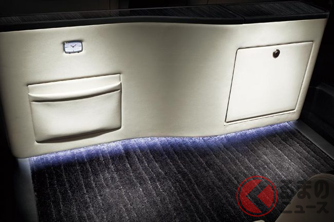 シートはギャザーを施した本革仕様でブラックとホワイトから選択ができるほか、後席に読書灯や100V電源、乗降用のステップなどを装備。さらに、ユーザーの要望に応じ、個別注文にも対応します。