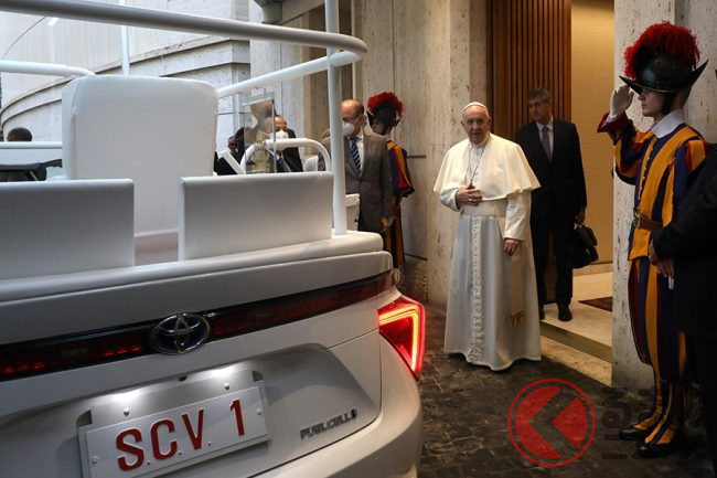 2020年10月7日、フランシスコ法王はカトリック中央協議会(CBCJ)からの贈り物として、彼のモビリティのニーズに適合した水素パパモビル、トヨタ「ミライ」を受け取りました。