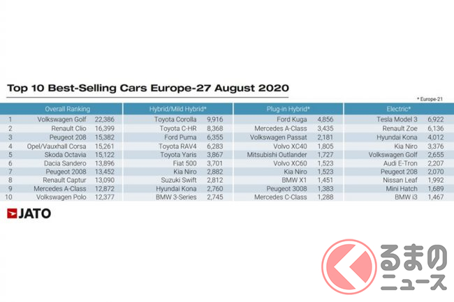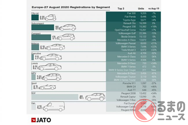 自動車産業の世界的な調査会社JATO Japan Limitedは、2020年8月の欧州の自動車市場についてのレポートを公開しました。