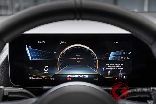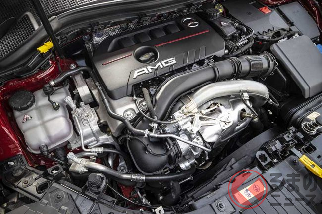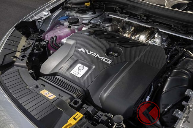 搭載されるエンジンは「M260」型2リッター直列4気筒ターボで、306ps・400Nmを発揮する。組み合わされるトランスミッションは8速AMGスピードシフトDCTで、全速度域できわめて自然な加速性能を実現している。エグゾーストシステムには自動制御のフラップを装備しており、ドライブモードに応じてサウンドの切り替えをおこなうことができる。