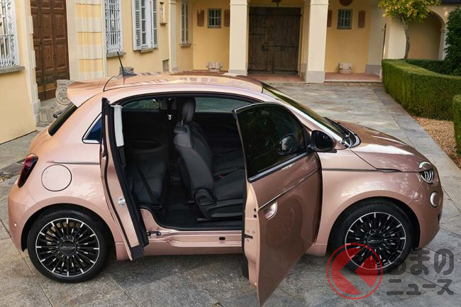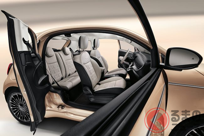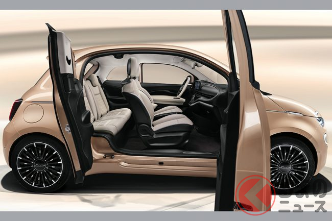 1957年に登場したオリジナルの初代500のように、後席ドアは後ろヒンジで開くドアを採用、伝統を引き継いでいるともいえる。センターピラーレスとなるため、後席へのアクセスは向上。その結果、大きな荷物の積み下ろしは楽になり、子どもを後部座席に乗せることもより素早く簡単になっている。