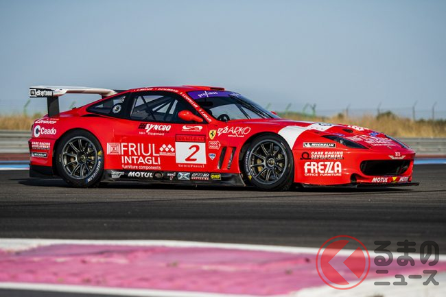 ちなみにこの550 GT1は、フェラーリがレースプログラムのために製作をイギリスのプロドライブに委託したもの。製作順では2台目に相当するもので、ルカ・カペラリとファブリツィオ・ゴリンのペアで、2004年のFIA GT選手権で優勝を飾っている。