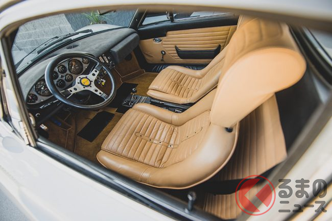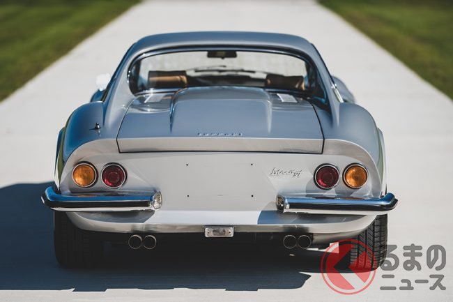 さて、オークションに登場したディーノ246GTは、ボディカラーがシルバーで内装がタンという珍しい組み合わせ。しかもタルガトップの「GTS」ではない点も希少だ。