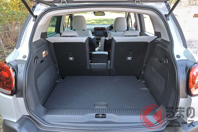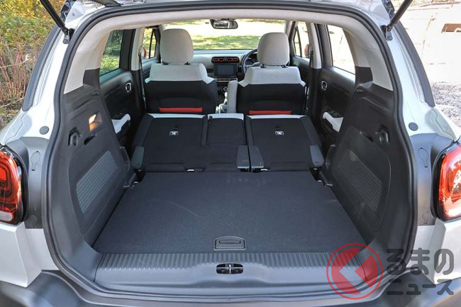 これにより、C3では300リッターの荷室容量は、C3エアクロスSUVでは410リッター、後席スライドをいちばん前にすると520リッターへと広がっている。また助手席シートバックを折りたたむと2.4mの長尺ものまで積載することが可能だ。