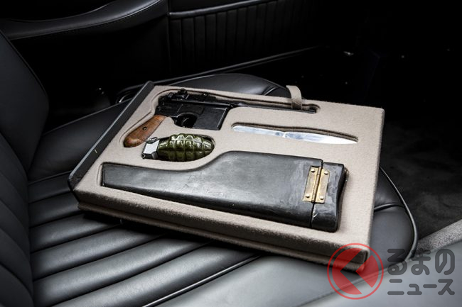 この作品でボンドが使用したDB5には機関銃や可変ナンバープレート、原始的なナビシステム、リア防弾装甲、携帯発信器、煙幕/オイル散布装置、助手席射出シートなど、当時としては夢のような秘密兵器で度肝を抜いた。
