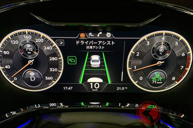 運転支援機能を備えていても、表示が小さくわかりにくいものもまだまだ少なくはない。職業柄、新型車を試乗した際に運転支援機能はすべて試すことにしているが、この新型フライングスパーのドライバーインターフェイスが最も優れているもののひとつだ。