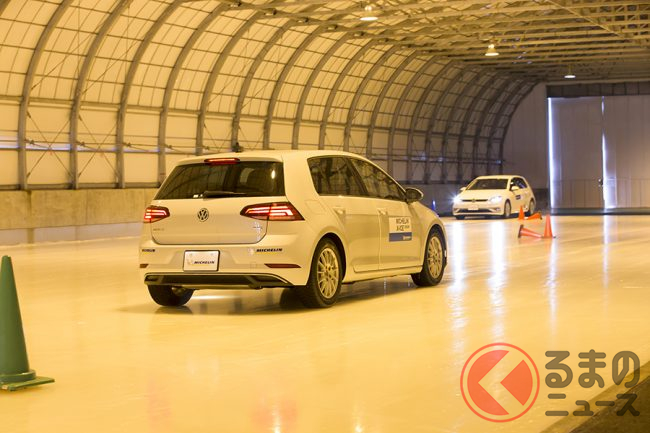スタッドレスタイヤは、ツルツルの氷路面である「アイスバーン」で、いかに短い距離で止まることができるかということを最重点課題として開発がおこなわれてきた。
