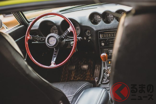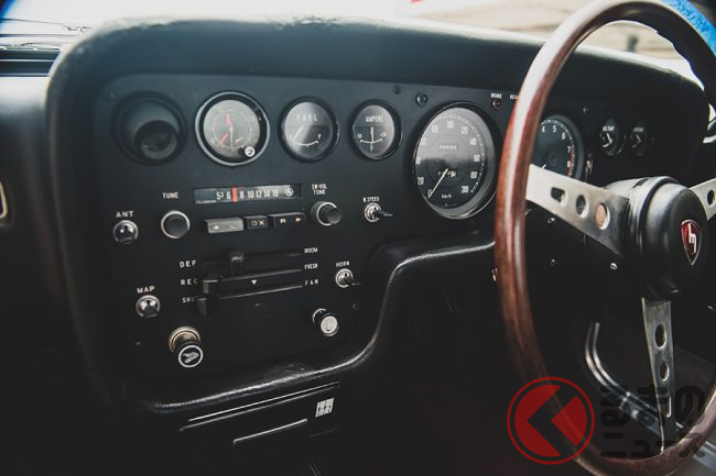 オークションに登場したフェアレディZは、北米では「ダットサン240Z」と呼ばれる輸出仕様だ。行距離は2万9000マイル(約4万7000km)強で、2.4リッターのL24型エンジンを搭載し、ミッションは4速MTとなっている。