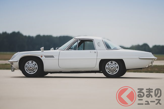 さて、オークションに登場したコスモスポーツは前期型であった。オークションの情報によれば、走行距離は7116kmしかなく、343台しか生産されていないうちの1台である。