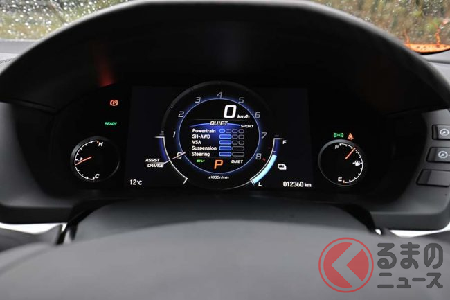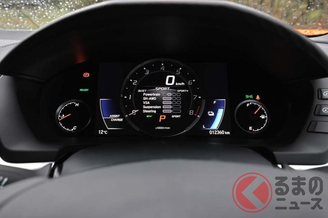 エンジンがV型6気筒ではしょぼいという声もあるが、システム最高出力581ps、システム最大トルク646Nmを誇るパワートレインが生み出す力強い加速フィールや、野太いエキゾーストサウンドはとても刺激的だ。そして2代目NSXならではの特徴として、ホンダ独自の電動化技術である「SPORT HYBRID SH-AWD(スポーツハイブリッドSH-AWD)」が挙げられるのはご存じのとおりだ。