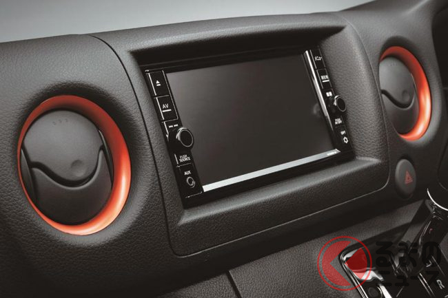 外装と同様に、エアコンの吹き出し口や、運転席と助手席のシートに施されたダブルステッチに、オレンジの差し色を加えました。