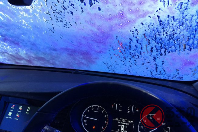 支払いが済むと扉が開いて中に進みます。すると屋内に設置された洗車機が前後して洗車するというシステム。海外の洗車機は日本と比べるとものすごく大雑把でダイナミック! ブラシとか硬そうだし、ボディへのダメージが気になるところです。実際、洗車が終わって外に出て確認すると、汚れが落ち切っていないこともよくあります、って言うか毎回そうです(笑)。