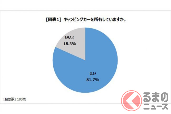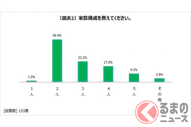 まず、「キャンピングカーを所有していますか?」という質問に対して、「はい」と答えた人は81.7%でした。また、家族構成について質問をしたところ、約半数の46.4%の人が2人家族世帯という結果となっています。