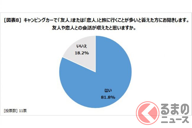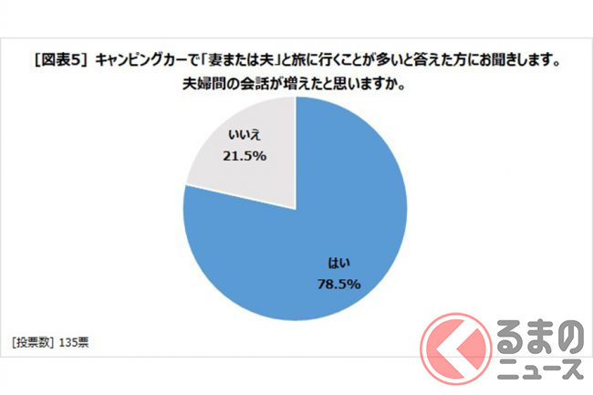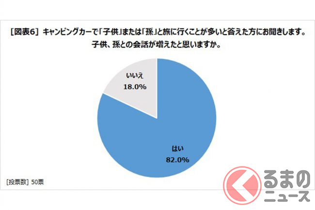 同アンケートでは、キャンピングカーで楽しむくるま旅は、家族との関係にどのような影響を与えるのか、また、家族の誰と出掛けることが多いかなど、全18問にわたって調査がおこなわれています。