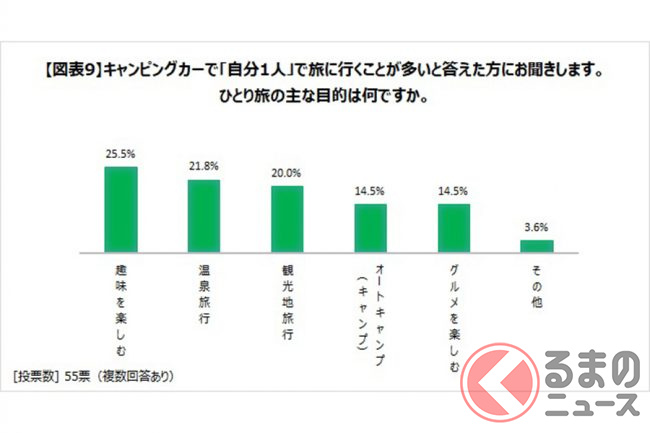 意外な回答としては、好きなアーティストのコンサートに出掛けるためにキャンピングカーを活用しているという人も見られ、中々興味深い結果となりました。