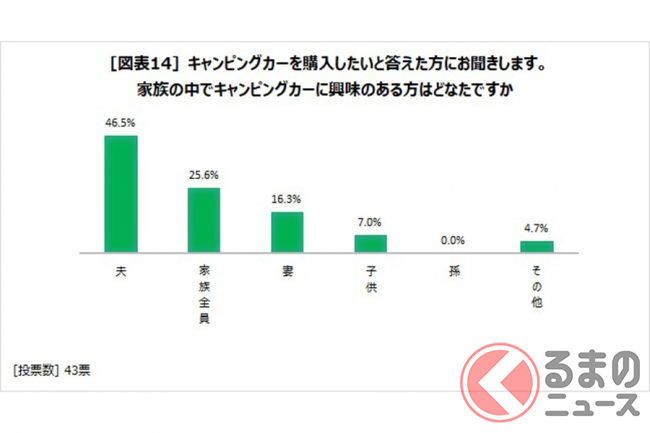 一般社団法人 日本RV協会は、キャンピングカーを所有しているユーザー、またはキャンピングカーに興味を持っている人に、「キャンピングカーと家族構成」についてのアンケートをおこないました。
