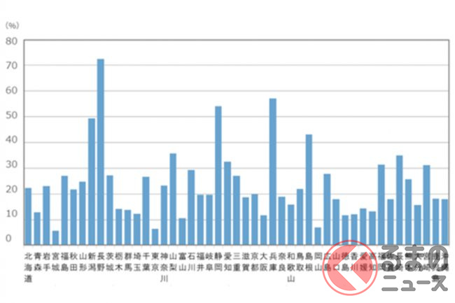 調査は新潟県内の2箇所で実施され、信号機が設置されていない横断歩道を通過する車両を対象におこなったところ、歩行者が渡ろうとしている場面で一時停止したクルマは49.4%という結果となりました。これは、全国平均の21.3%を28.1ポイント上回る数字です。