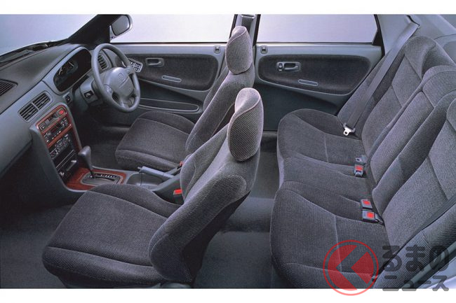 装備もフルオートエアコン、パワーステアリング、パワーウインドウ、パワードアロック、電動リモコンドアミラー、オーディオシステムなどを全グレードに標準装備し、1.6リッターから1.8リッタークラスで初めて運転席用エアバッグシステムを標準装備するなど、上級車に劣らない装備を採用していました。