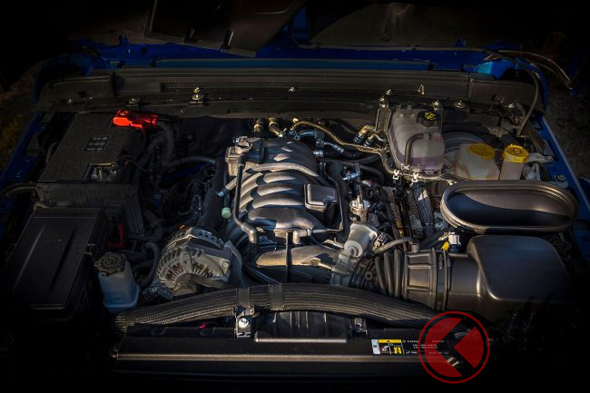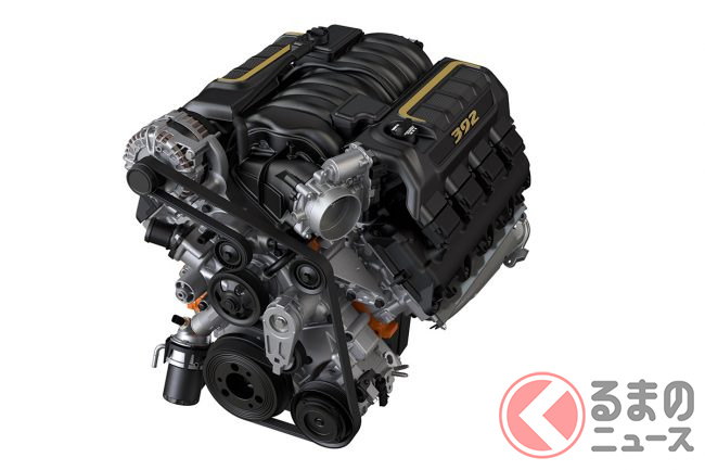 鋳鉄製のシリンダーヘッドにアルミニウム製のヘッドを組み合わせ、さらにルビコン392の機能的なボンネットスクープのためにデザインそのものを見直したというこの新型V型8気筒エンジンには、アクティブエアインテークマニフォールド、可変カムシャフト、ツインスパークプラグ、ナトリウムを充填した排気バルブ、中空幹吸気バルブ、ピストンオイル冷却ジェットなどを装備。