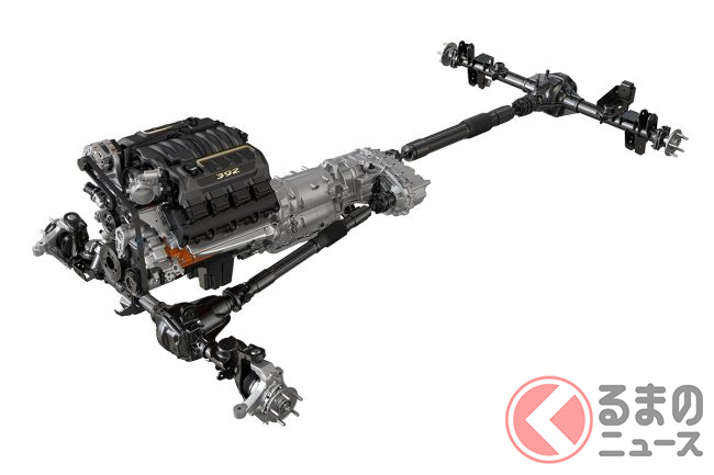 ルビコン392のメカニズムで最大の話題となるのは、やはりエンジンルームに収められるパワーユニットだ。それはラングラーにとって実に40年ぶりの復活となるV型8気筒エンジンで、排気量は車名にも掲げられているように392立法インチ(6.4リッター)となる。