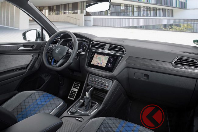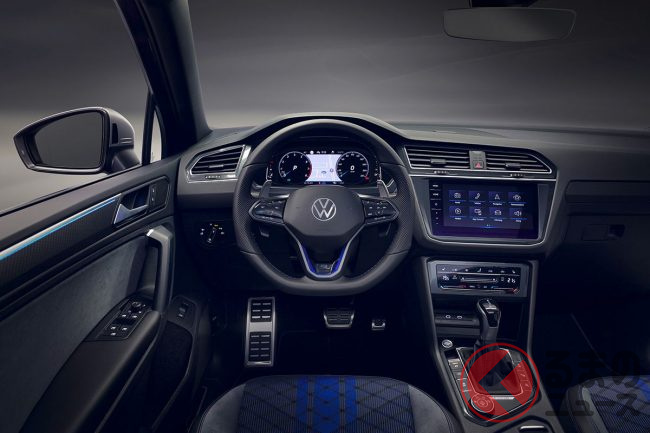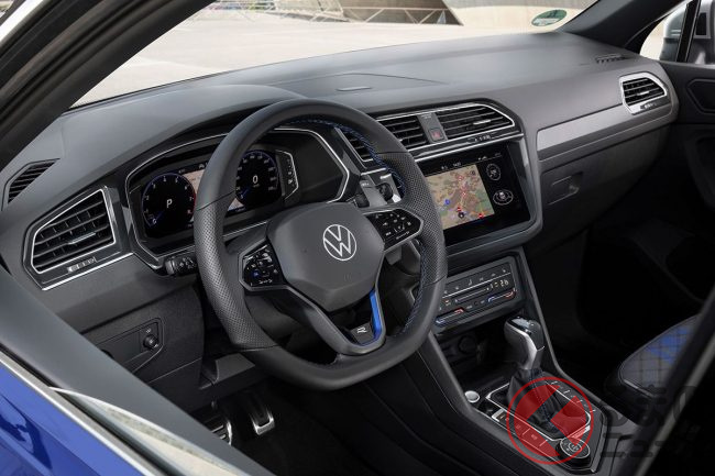 インテリアではヘッドレスト一体型のプレミアムスポーツシートや専用Rロゴ、ラップタイマー機能などもあるデジタルコックピットなどを装備、ほかのティグアンとは差別化されている。