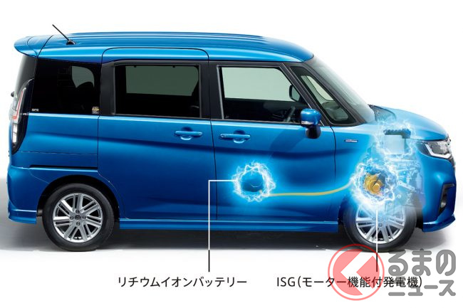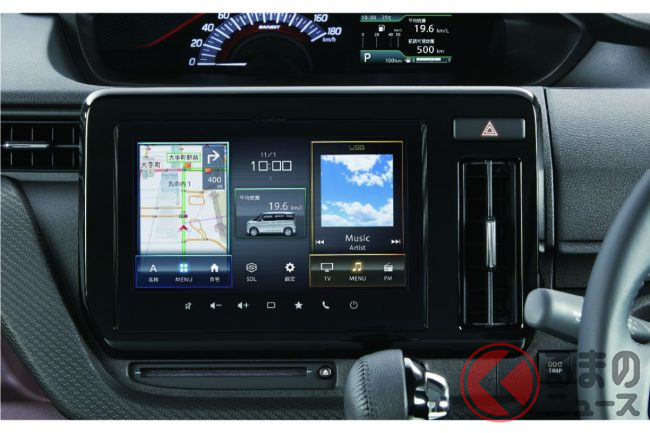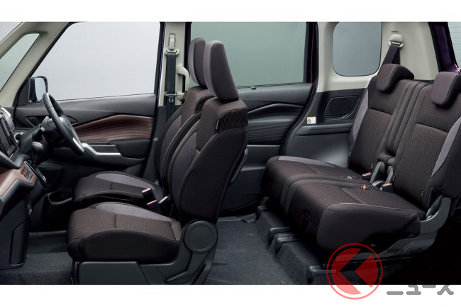 新型ソリオは登録車のなかの小型トールワゴンに分類されるクルマですが、ホンダ「N-BOX」に代表される軽スーパーハイトワゴンの車種とは、高い車高による広い室内や、後席両側スライドドアの採用といった点で共通します。