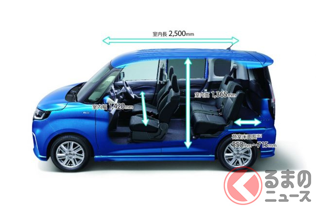 軽自動車規格のN-BOXが440mmから630mm(4名乗車時)であるのに対するアドバンテージとなっています。