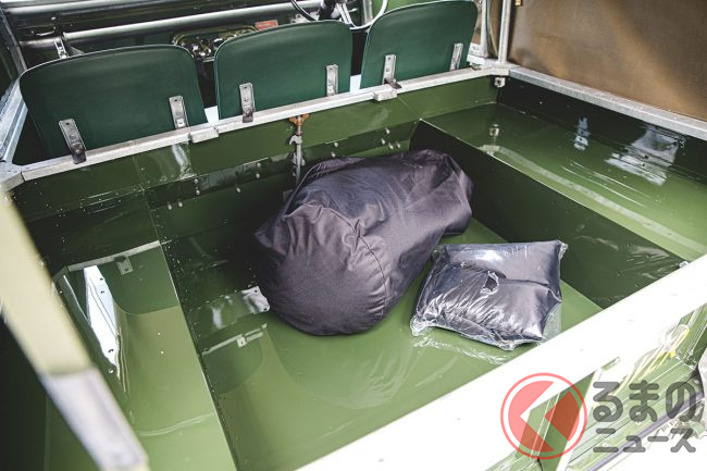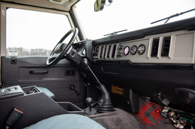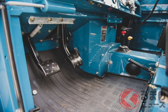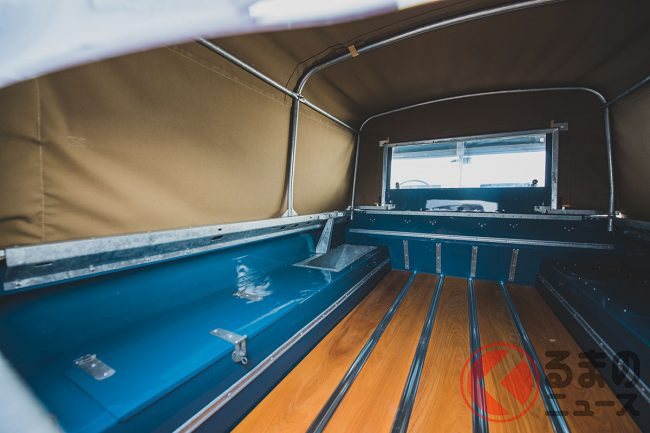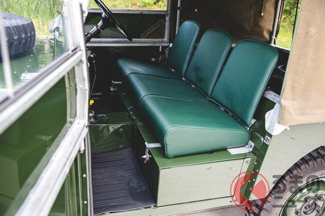 リボーン化にあたっては、元色であるブロンズグリーンにペイント。インテリアも時代考証によって選ばれたグリーンのビニール張りが施されている。また、オリジナルのキャンバストップと取り外し可能なサイドウインドウも、当然のごとく新品に取り換えられている。