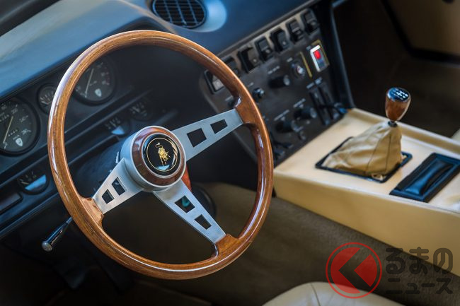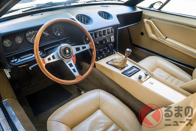 そして、いかにも1970年代的に直線基調のモダンなボディは、「ミウラ」で大成功を収めて以来、ランボルギーニのボディデザインを委ねられたカロッツェリア・ベルトーネと、同社でチーフスタイリストを務めていた、マルチェッロ・ガンディーニの手によるものである。