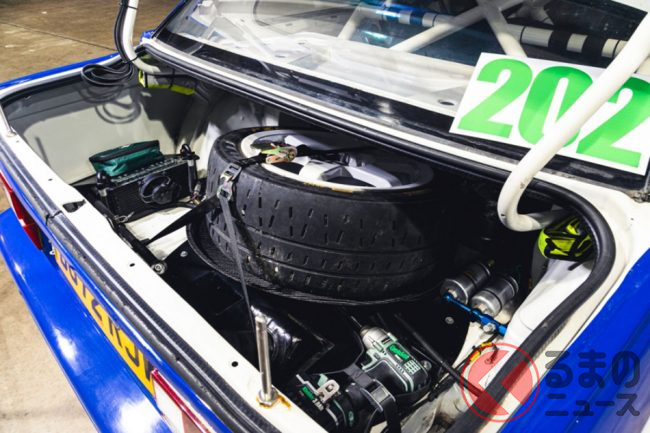 サスペンションもジオメトリーが違っているほか、ハブはPCD100の4穴ではなく、120の5穴を採用。これはブレーキキャリパーと同じく、E28型5シリーズの部品を流用したものである。
