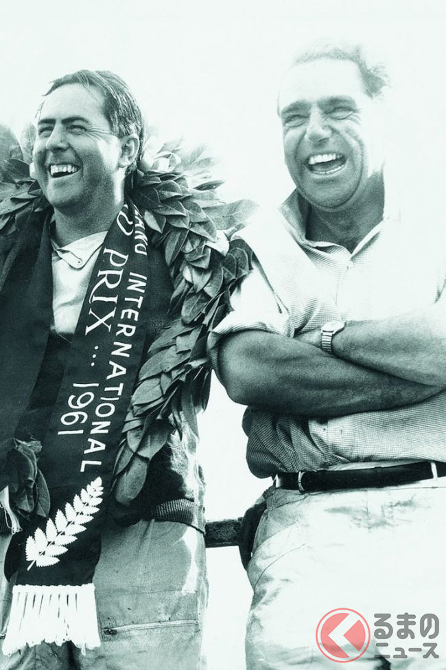 当時のF1は、エンジンを前に置いたFR駆動方式が主流であったが、クーパー親子はエンジンをドライバーの後ろに乗せるミッドシップ方式を採用し、驚くほどの速さを見せつけた。当時、クーパー製のF1をドライブしたのは、ジャック・ブラバムやスターリング・モスといった伝説のパイロットたちである。そして1959年には、フェラーリやマセラティ、アストンマーティン、ポルシェといったライバルを打ち破り、クーパーはF1コンストラクターズ・チャンピオンを獲得。翌1960年も連覇したのだ。
