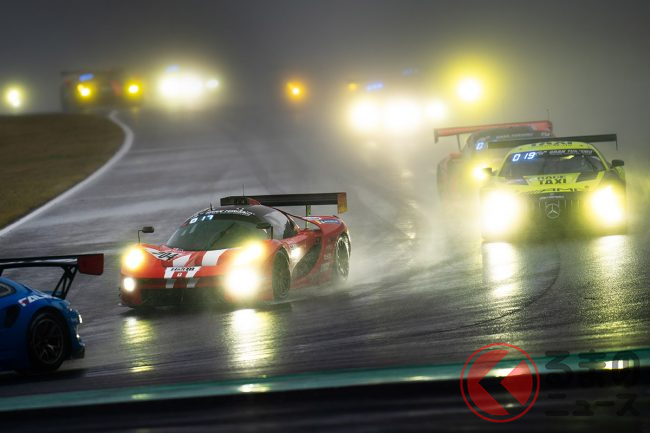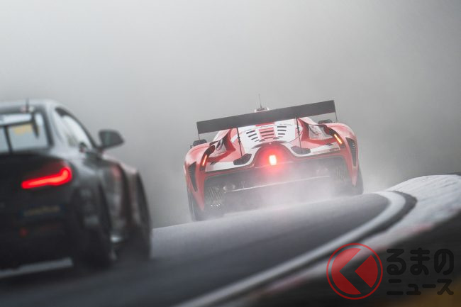 2020年9月26日15時30分、雨が降りしきるなか、ニュル24時間耐久レースが開催された。25kmを超える長いフォーメーションラップを終え、各車一斉にスタート。