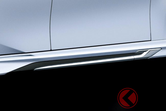 さらにサイドスカートは、フロントからリヤに向かって収束していく大型メッキ加飾と、リヤフェンダーを強調するブラックアウト表現によって、伸びやかなサイドスタイリングを実現しました。