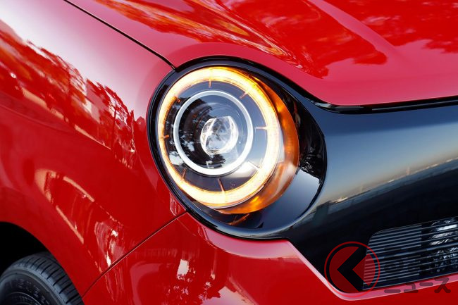 加えてバンパー(フロントだけでなくリアも)の“口”のような黒い部分が左右に広がっていることや、ヘッドライト周囲のドーナッツ状のリングがデイライトとウインカーを兼ねたマルチファンクションになっていることも、新型を見分けるポイントとして挙げられます。