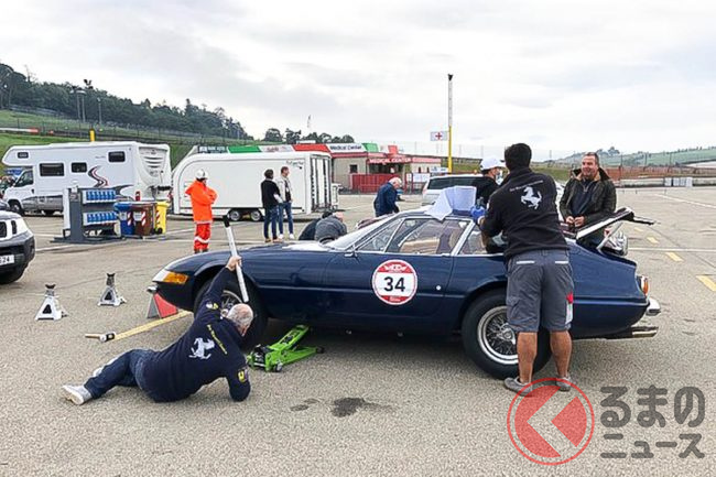 この2台がポロストリコチームにより、今回のヒストリックカーレース参戦のために整備され、サービスカー「ウルス」と共にスタート地点、ローマまで運ばれてきた。