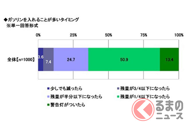 ガソリンを入れるタイミングは「残量が1/4以下になったら」が50.9%