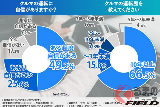 株式会社フィールドが、普通自動車免許を保有している全国の20代から60代の男女を対象に、「クルマの運転に関する調査」を実施。その結果を公開しました。