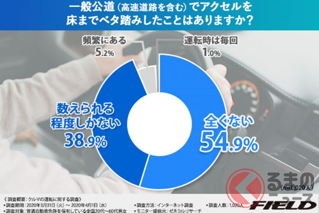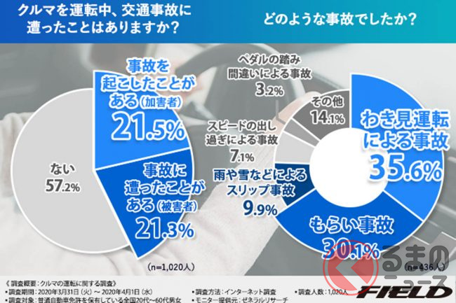 そこで株式会社フィールドは、普通自動車免許を保有している全国の20代から60代の男女を対象に「クルマの運転に関する調査」を実施し、運転する上で忘れてはならない「交通事故」の防止についての注意喚起をおこないました。