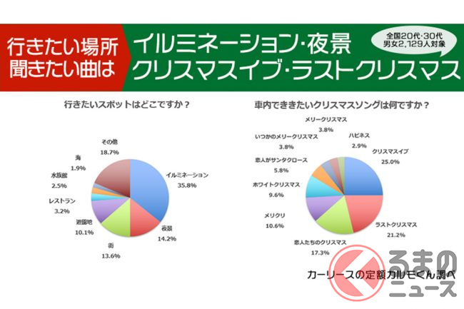そこで、月額定額カーリース「おトクにマイカー 定額カルモくん」を運営するナイル株式会社が、全国の20代と30代の男女2129人を対象に、クリスマスのドライブデートについてのインターネット調査をおこないました。