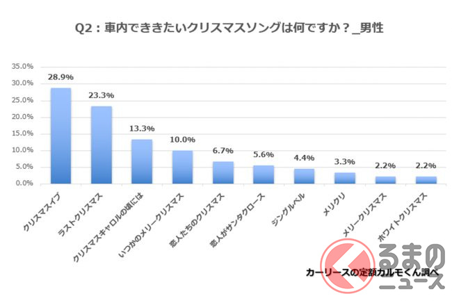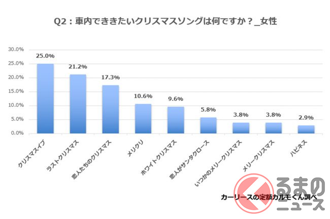続いて、車内でききたいクリスマスソングを聞いたところ、回答は以下の結果となりました。